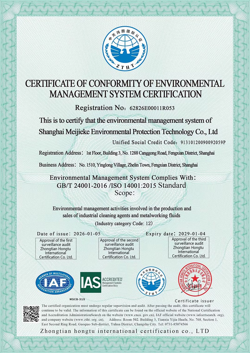 環(huán)境管理體系認(rèn)證證書